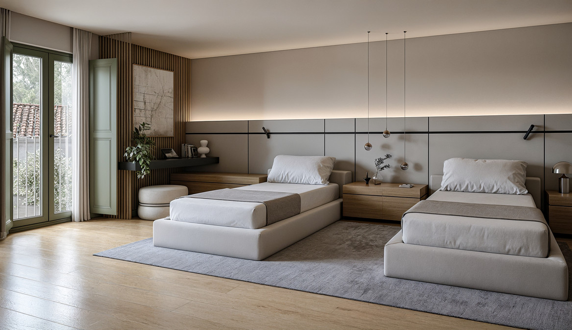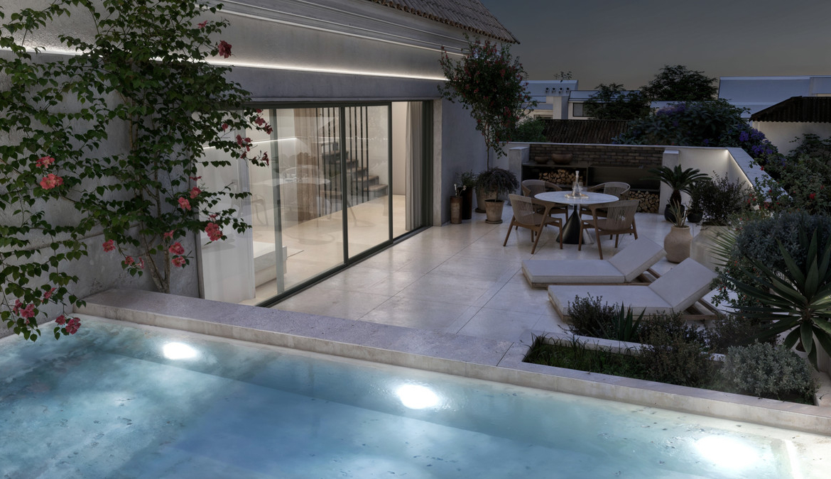 These designer homes feature 2 bathrooms—one of them en suite—as well as terraces, private pools, and patios, depending on the unit type. They come equipped with furnished kitchens, modern appliances, aerothermal climate control, air conditioning, heating, and double glazing. Each property includes a parking space accessible via a vehicle lift and a storage room. The building also includes an elevator, a solar energy system, and boasts a high energy rating.