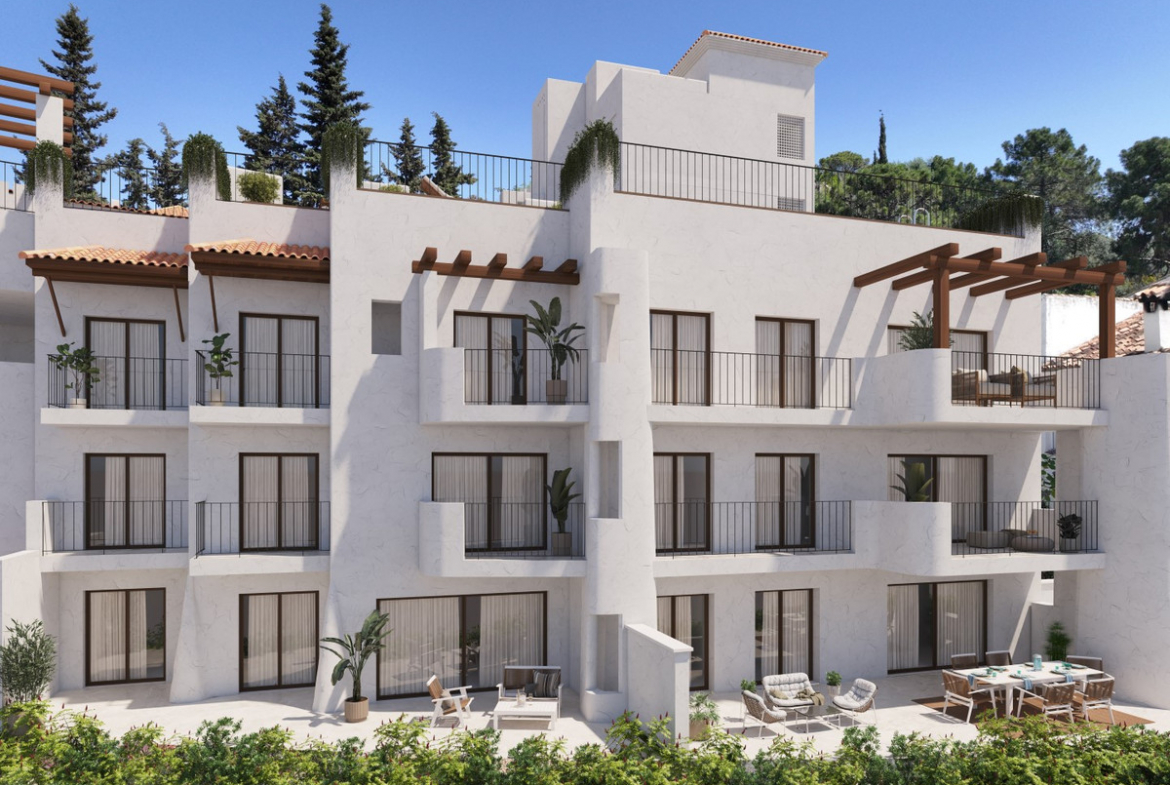 Located in the heart of Benahavís, a new residential development is being launched featuring 28 Mediterranean-style apartments with 1, 2, or 3 bedrooms. Each home includes a private underground parking space and access to a communal rooftop pool.