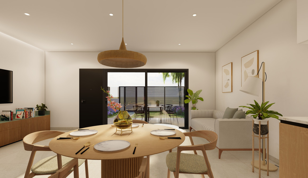 These stylish bungalows offer 2 bedrooms, 2 bathrooms, and an open-plan kitchen and living room. The bungalows come with pre-installation air conditioning, built-in wardrobes, and modern interiors. Ground floor units feature a spacious terrace with the option of adding a private pool (available at an additional cost), while the upper floor units boast a private solarium with an included swimming pool, perfect for relaxing in the Mediterranean sun.