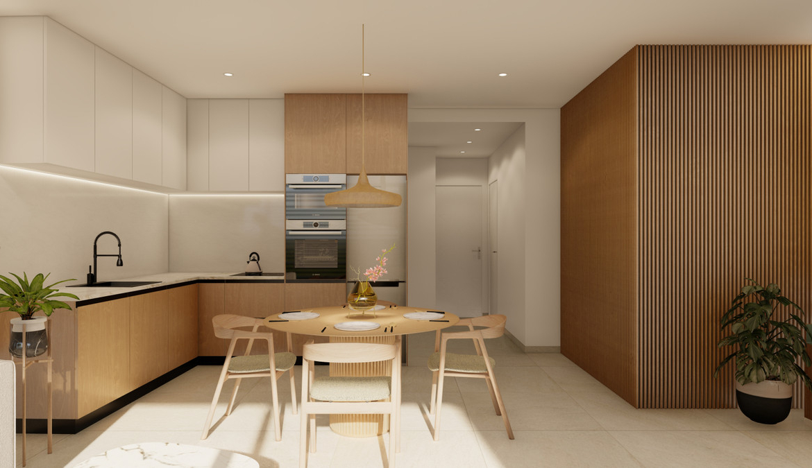 Each bungalow includes a parking space, and all apartments are finished to a high standard. Features include kitchen appliances, electric shutters, pre-installation ducted air conditioning, fully fitted bathrooms, and LED lighting both inside and outside.