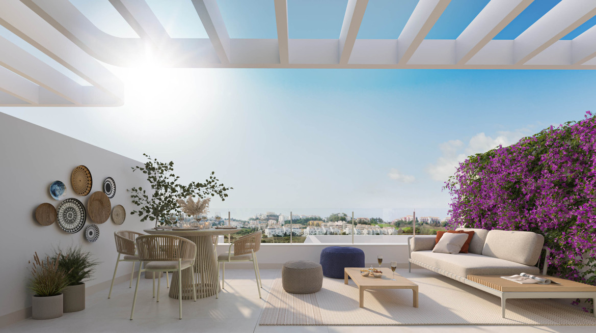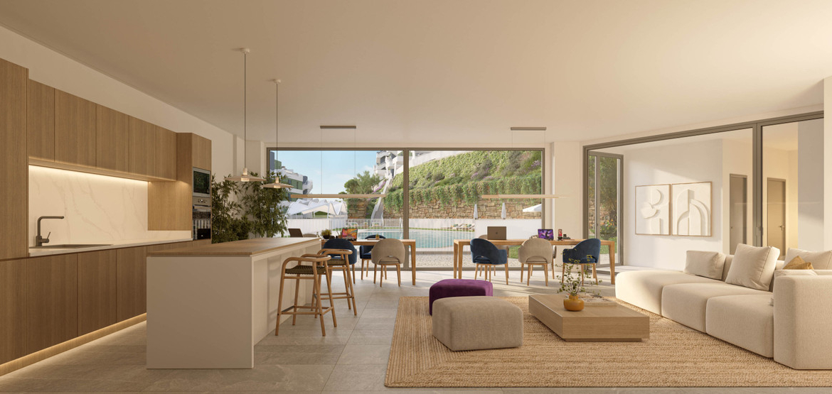 This development is inspired by the luxury of a tropical residence, where water and vegetation are the main characters and the outdoor spaces form part of the daily life of each home. Its privileged location, in Mijas, and its communal areas, with swimming pool and gym are surrounded by gardens for you to enjoy the wonderful climate and lifestyle of the Costa del Sol.