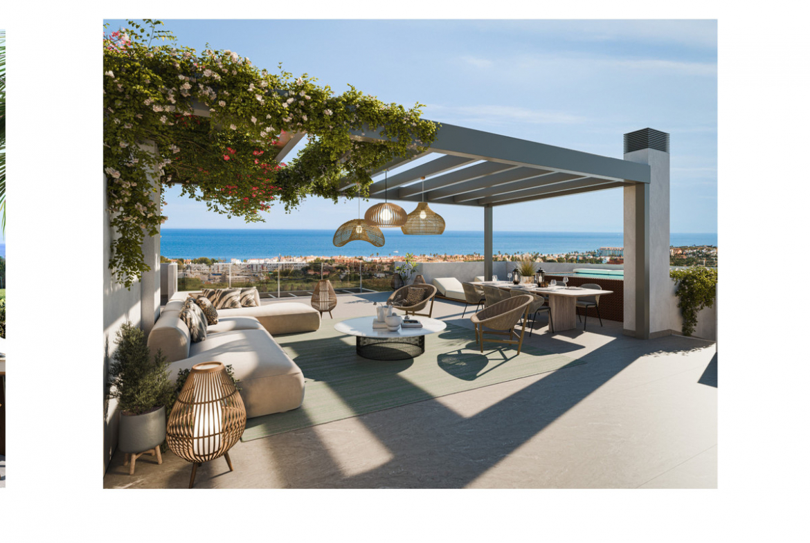 New development located in Casares Costa, Costa del Sol, featuring 99 two- and three-bedroom homes with spacious terraces, private gardens on ground floors, penthouses with solarium and outstanding sea views.