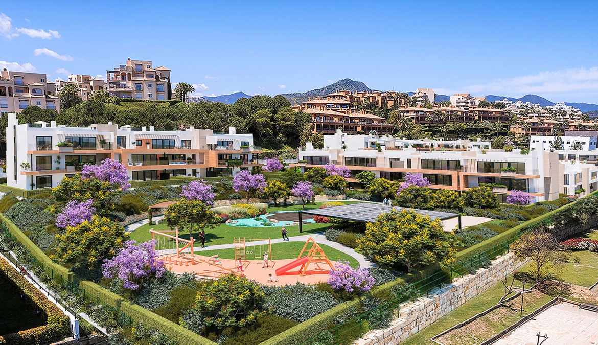 New project of luxury 2 and 3 bedroom apartments and penthouses in the last plot in prestigious Atalaya, on the junction of the golden triangle Marbella – Benahavis – Estepona, in a gated exclusive community full of amenities with gym, heated pool and jacuzzis, lush gardens and yoga lake, in walking distance to facilities and within a short drive to the beach, Puerto Banús and Marbella.