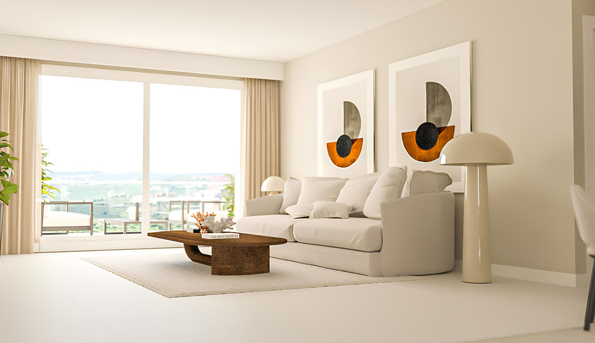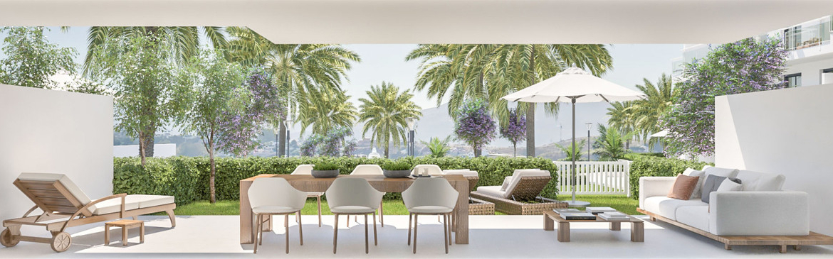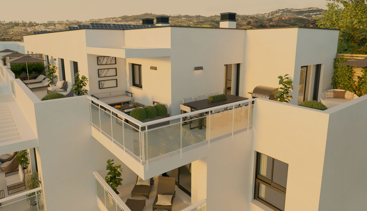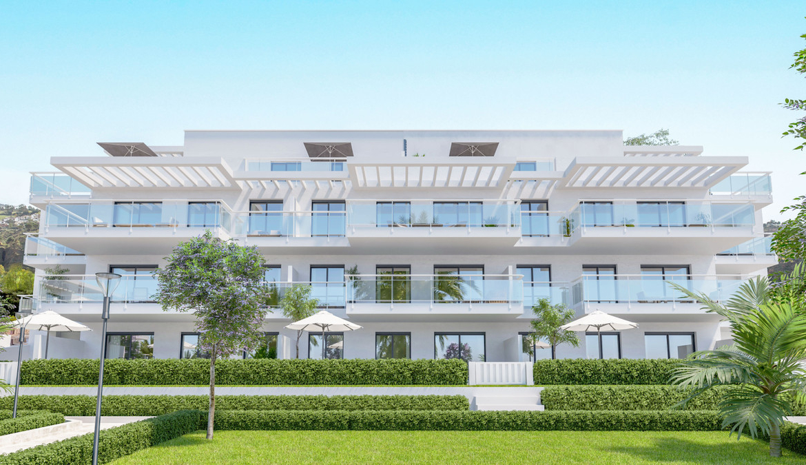 Modern and bright apartments situated in the centre of each building with open views to the community gardens and the Mijas mountains. The lay-out of our 2 bedroom apartments is very attractive as from all rooms you have direct access to a spacious 20+ m2 terrace. Ground floor apartments also benefit from a private garden with access into the communal gardens.