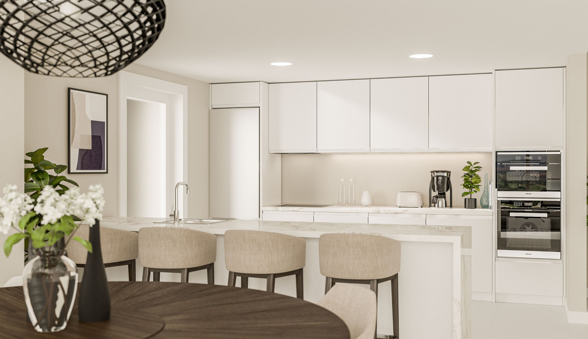 All apartments and penthouses come with 2 modern bathrooms and a fully fitted kitchen including Bosch appliances. Each property also comes with its own allocated parking space.