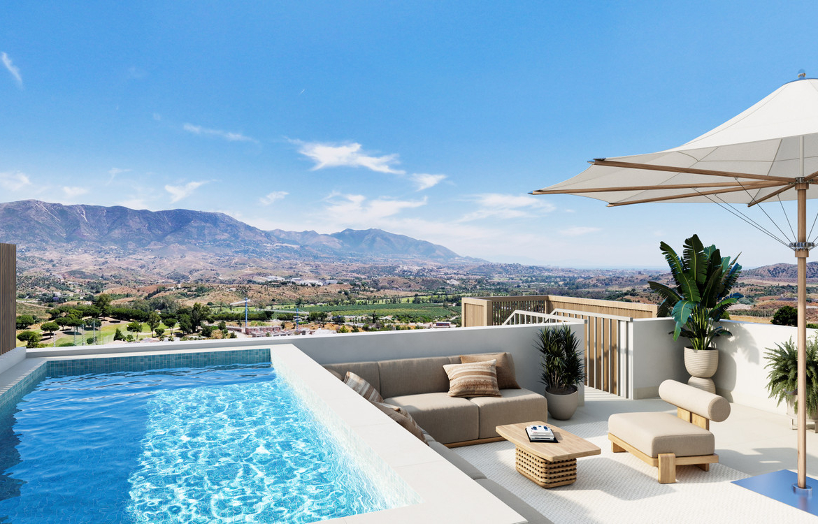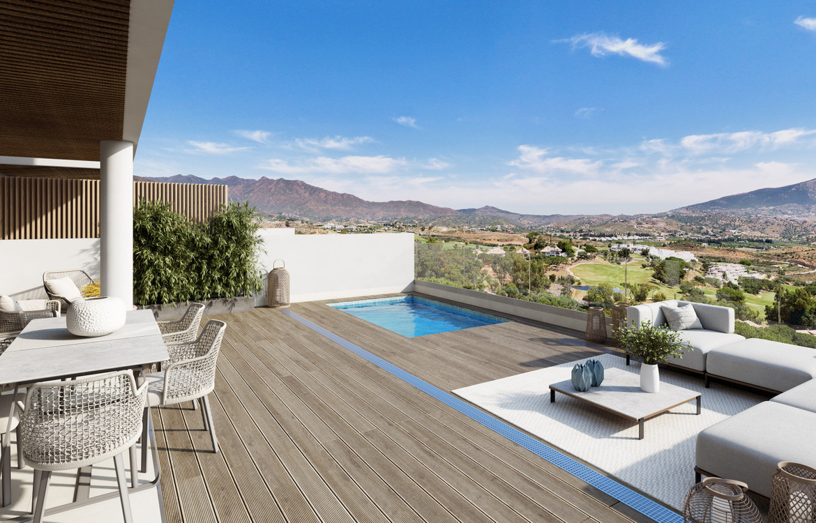 This gated residence consists of 48 homes (flats) in an exclusive location facing the hole n°4 on Asia golf course in La Cala Golf, offering sea views and south-east orientation.