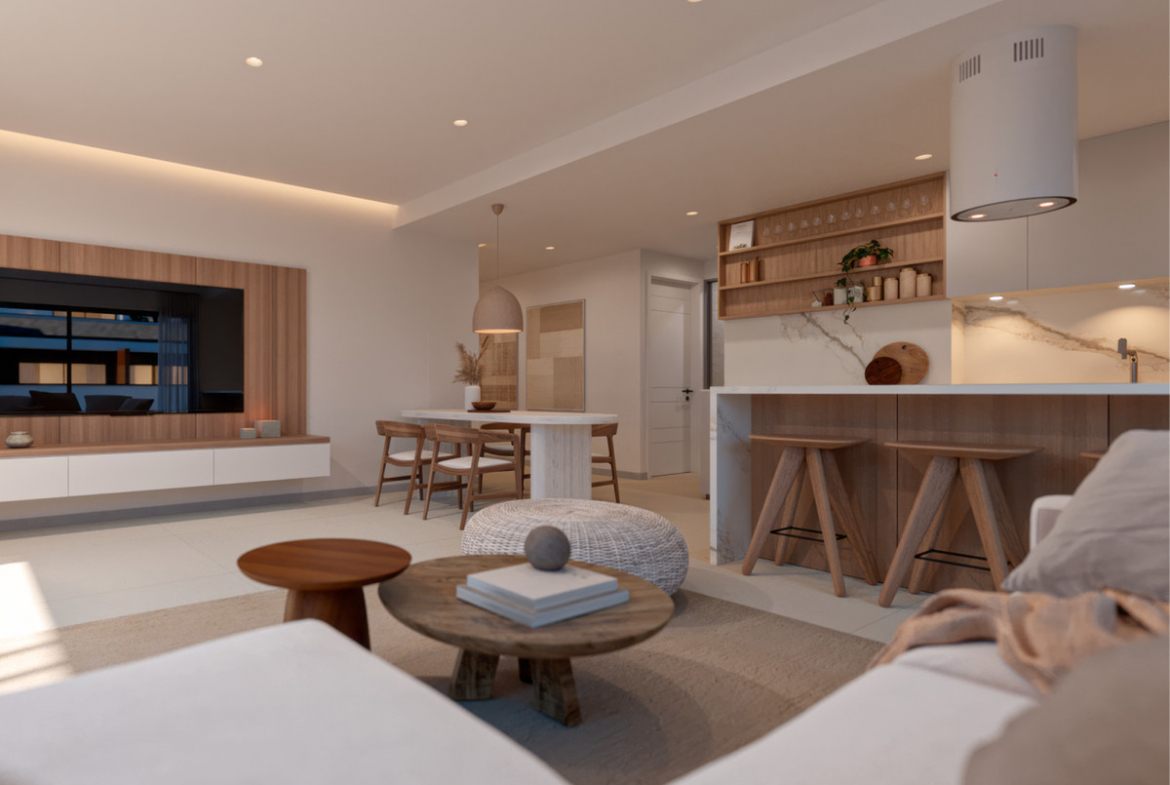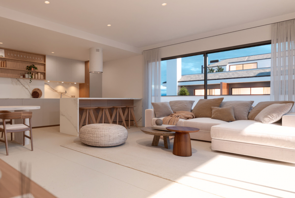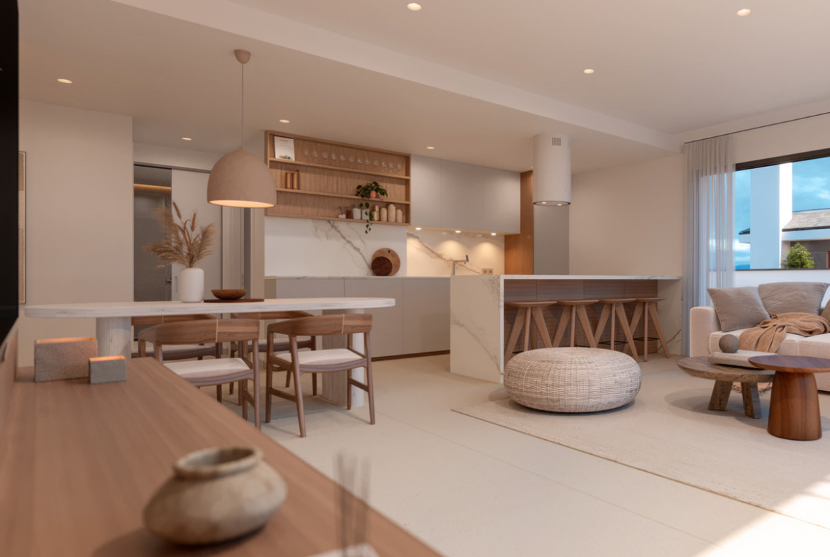 Spacious integrated living rooms and kitchens rooms and sunny terraces.