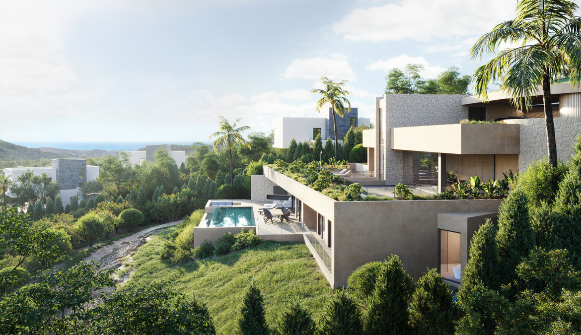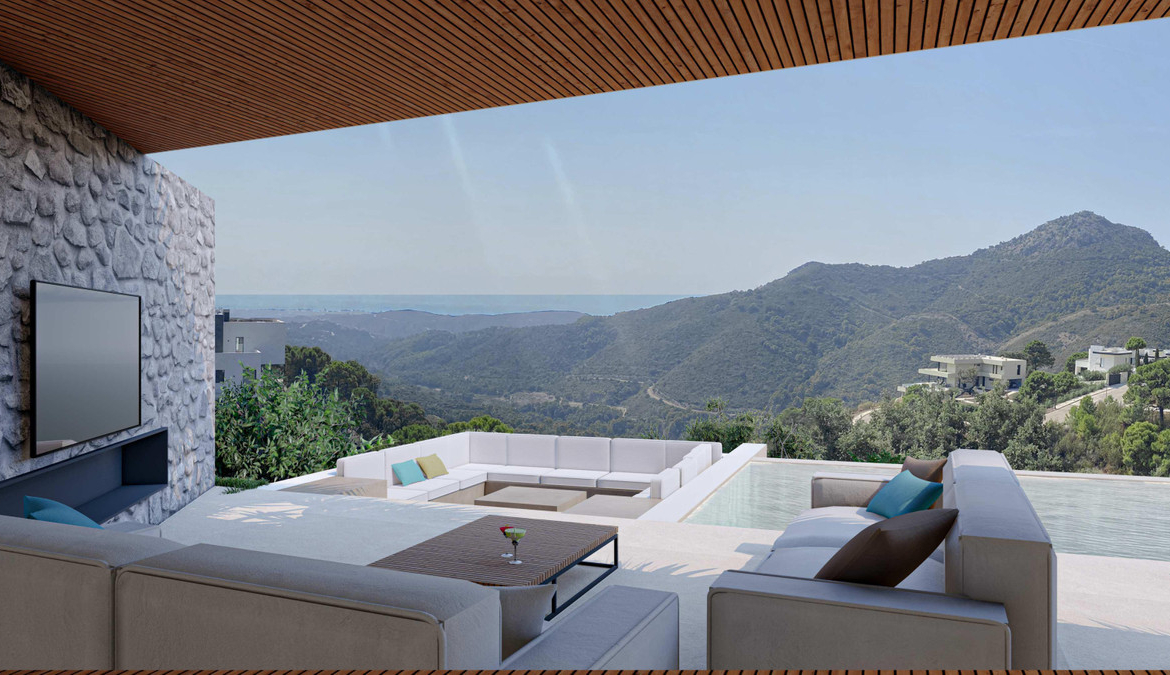 A modern "Turnkey" luxury villa in one of the most picturesque locations of the Monte Mayor Valley, blending seamlessly with the lush landscape of the prestigious mountainous surroundings of this sought-after residential community.