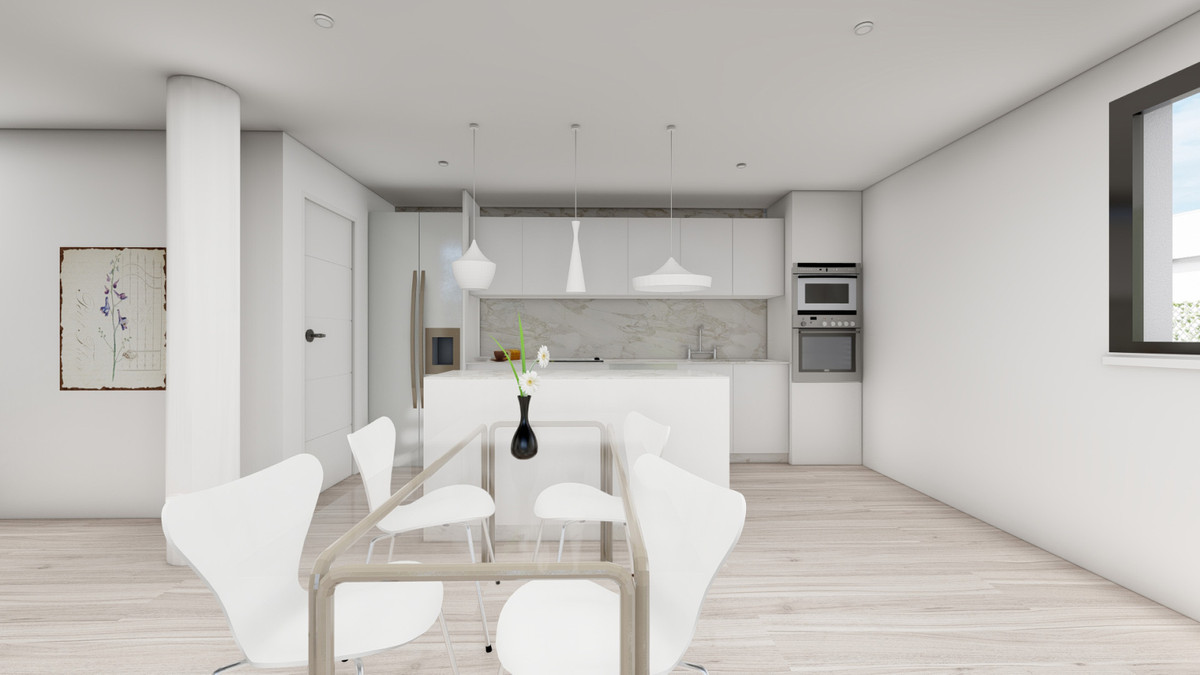Each property has 3 bedrooms, 2 bathrooms and a toilet, plus a dressing room in the master bedroom. The properties have been designed on one level, with a contemporary style and an open planned concept, comprising a fully fitted kitchen and a lounge-dining room.