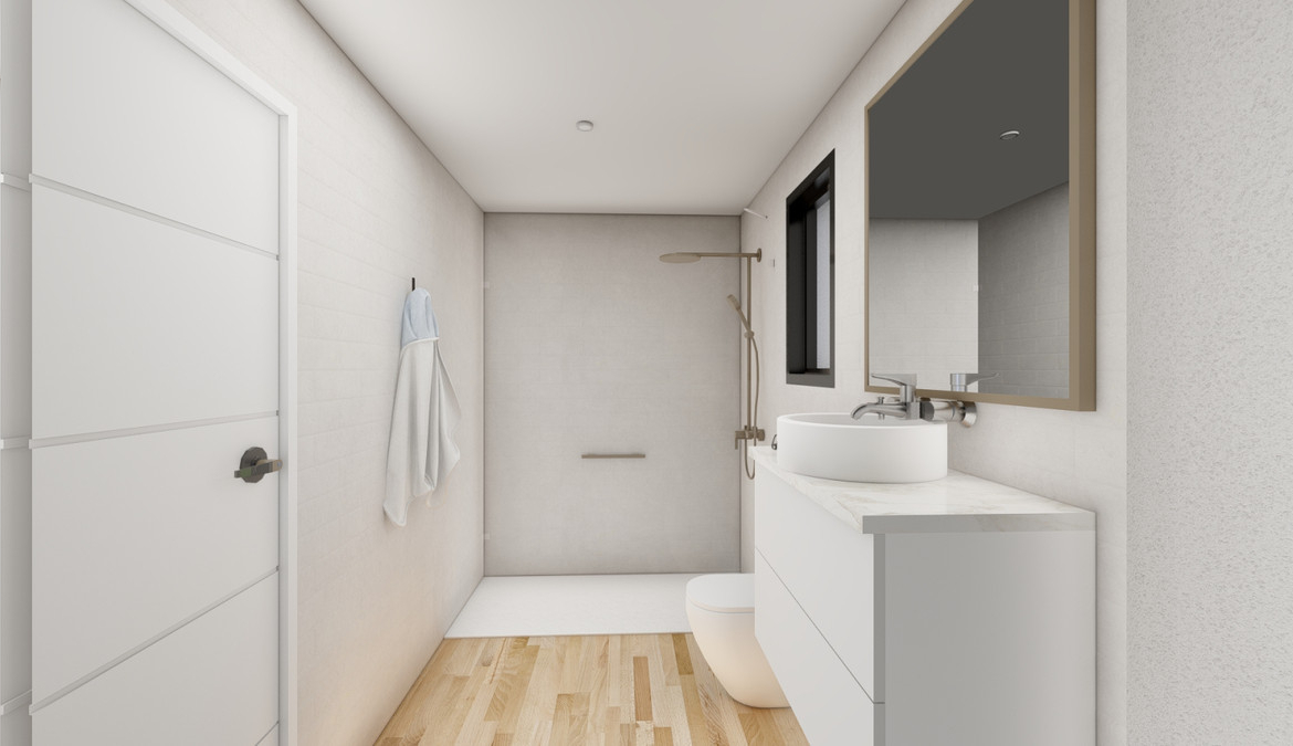 – Fully fitted bathrooms with vanity unit, toilet, mirror, shower and shower screens.