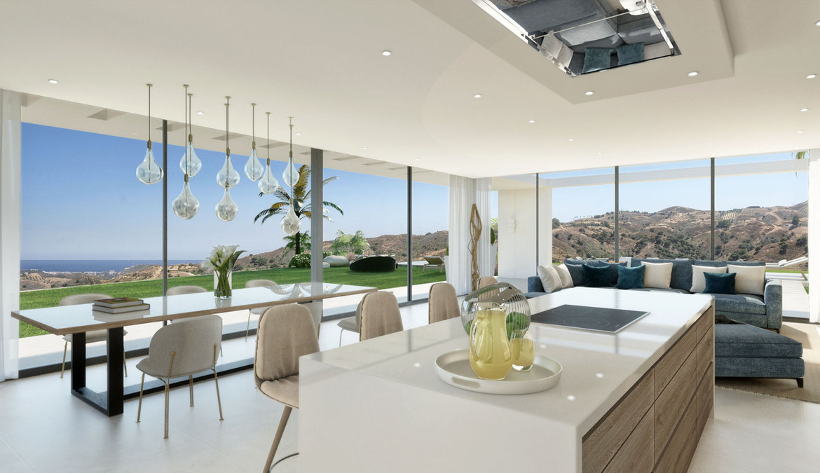 This high-quality villa is carefully implanted on a large 1486m2 plot maximizing your privacy and guaranteeing the best possible views over the green hills of Mijas and to the Mediterranean Sea. It has a perfect south-west orientation.