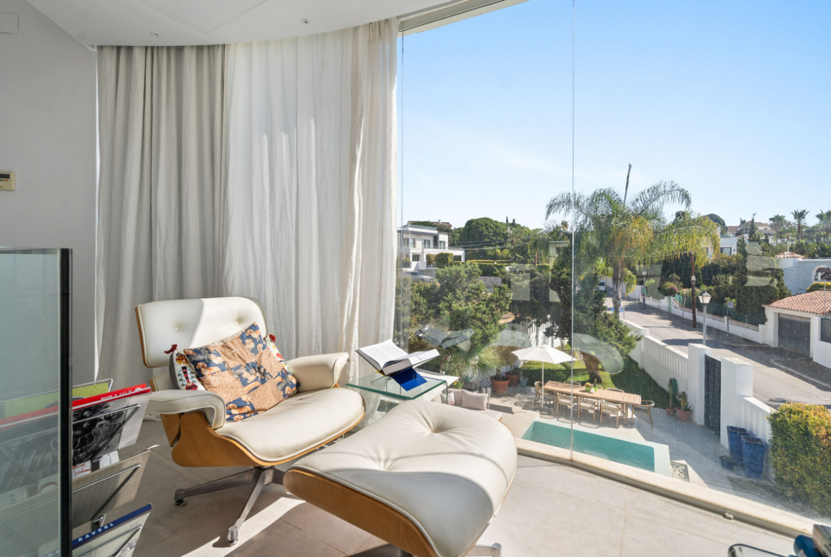 This iconic villa is located in the private urbanization of Marbesa, close to the beach, on the east side of Marbella. It is 400 meters walking distance or 10 minutes walk from the Mediterranean Sea and the beach, 1.5 km from the beach and the protected dunes of Cabopino and 1.9 km from the hotels Marriot and Don Carlos and Nikki Beach Marbella. Marbesa is a quiet and prestigious neighborhoud known for its beautiful coastline and its proximity to Marbella.