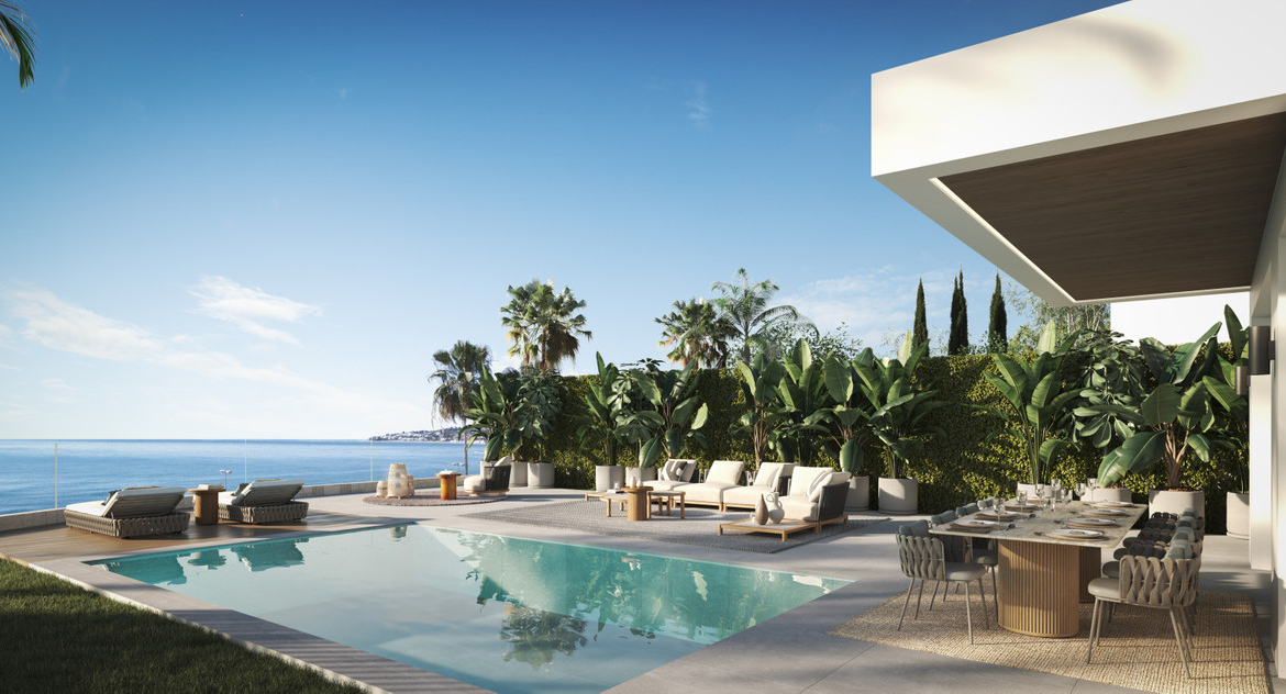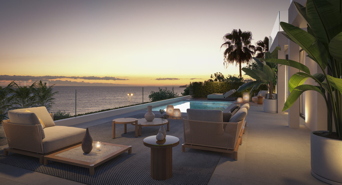 Outside is every bit as captivating. Landscaped gardens invite barefoot strolls, private pools reflect the endless blue of the sky, and an optional jacuzzi on the solarium creates the perfect spot for total relaxation, with the soft murmur of the sea in the background. At this development, nature isn't just a backdrop; it's part of the home.