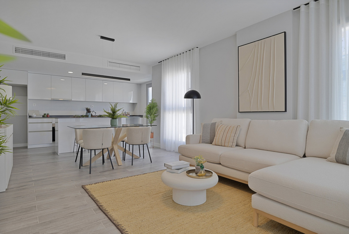 This development is a new residential complex in Mijas Costa, one of the best sought after areas of the Costa del Sol. This exclusive complex of 166 apartments of 2 and 3 bedrooms and Penthouses of 3 and 4 bedrooms, as well as fantastic common areas including a children's playground area. Ground floor apartments have terraces and private gardens. All kitchens have cooking islands and all bedrooms have access to large terraces. Open green areas, indoor heated pool and outdoor pools, Wellness Center, gym and running track. Many facilities included, not to mention all the amenities at walking distance. Definitely the perfect place on the Coast.