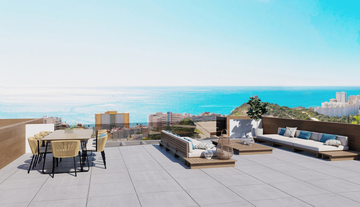 The roof terrace offers breathtaking views of the Mediterranean Sea and the city of Fuengirola, with space for, for example, a jacuzzi and an outdoor kitchen.