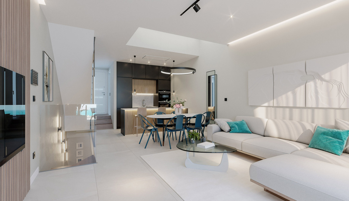 These impressive homes, set over 4 floors provide 3 bedrooms, 2.5 bathrooms, an ample basement area, private parking, garden, solarium and multiple terraces.