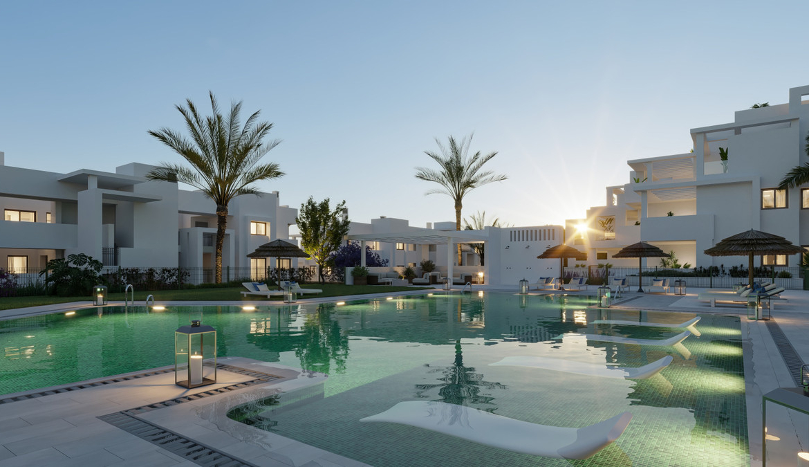 The penthouses at this resort in Estepona offer a true taste of Mediterranean luxury. Enjoy stunning sea views from your spacious terraces, complete with an exclusive jacuzzi on the rooftop. These bright, three-bedroom homes create a peaceful, upscale environment. You'll have access to top-notch amenities designed for your comfort, including an infinity pool, a fully equipped gym, a gourmet lounge, and dedicated yoga spaces. Located near beautiful beaches and world-class golf courses, the resort is also just a short walk from Estepona's charming old town, where you'll always find something new to explore. Plus, you're perfectly connected to Marbella, Sotogrande, and Malaga. These penthouses come with high-end finishes, such as motorized blinds opening onto the terrace, underfloor heating in the master bathroom, and a state-of-the-art kitchen, ensuring comfort and exclusivity throughout your home.