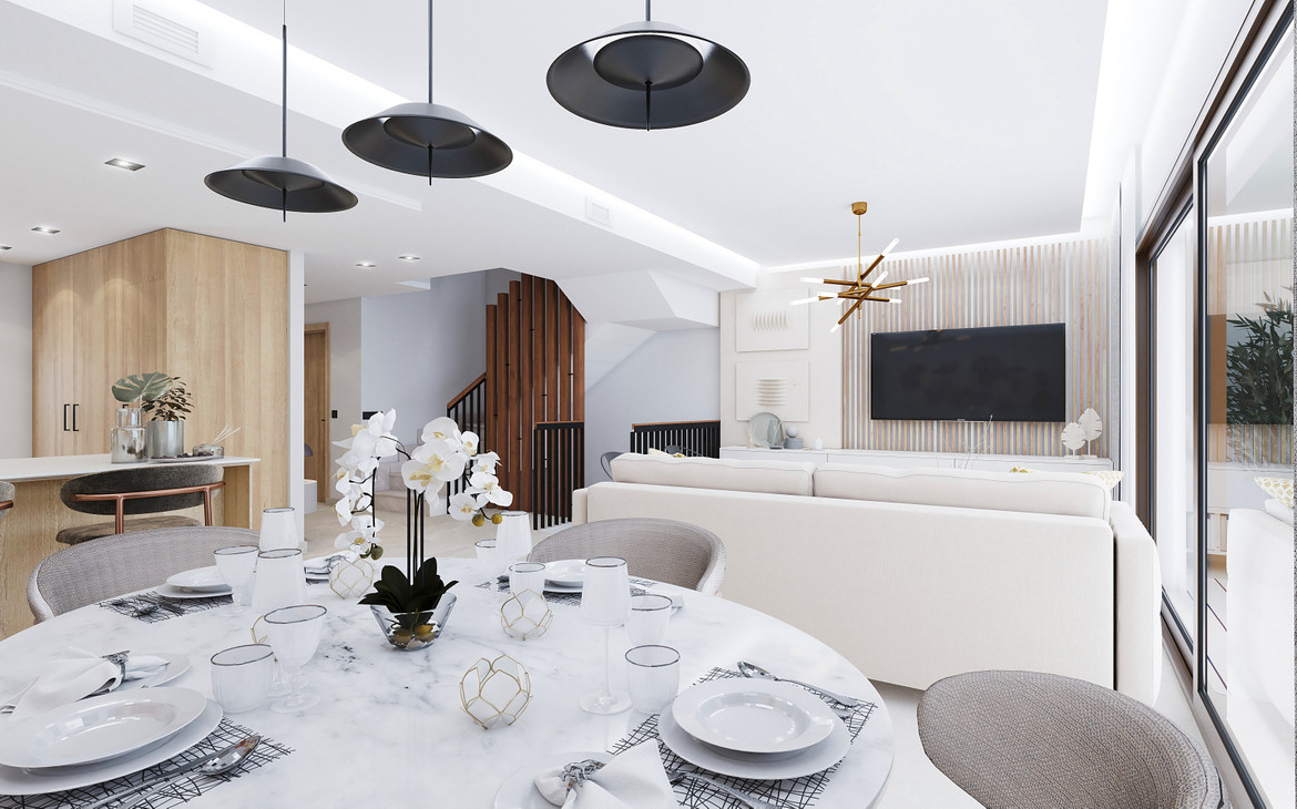 This is a new project in La Cala Resort formed by 26 spacious townhouses in front line golf position with panoramic views of the resort and Mijas valley. South-west orientation. The homes are distributed over 3 levels in a private gated community with communal pool and gardens.