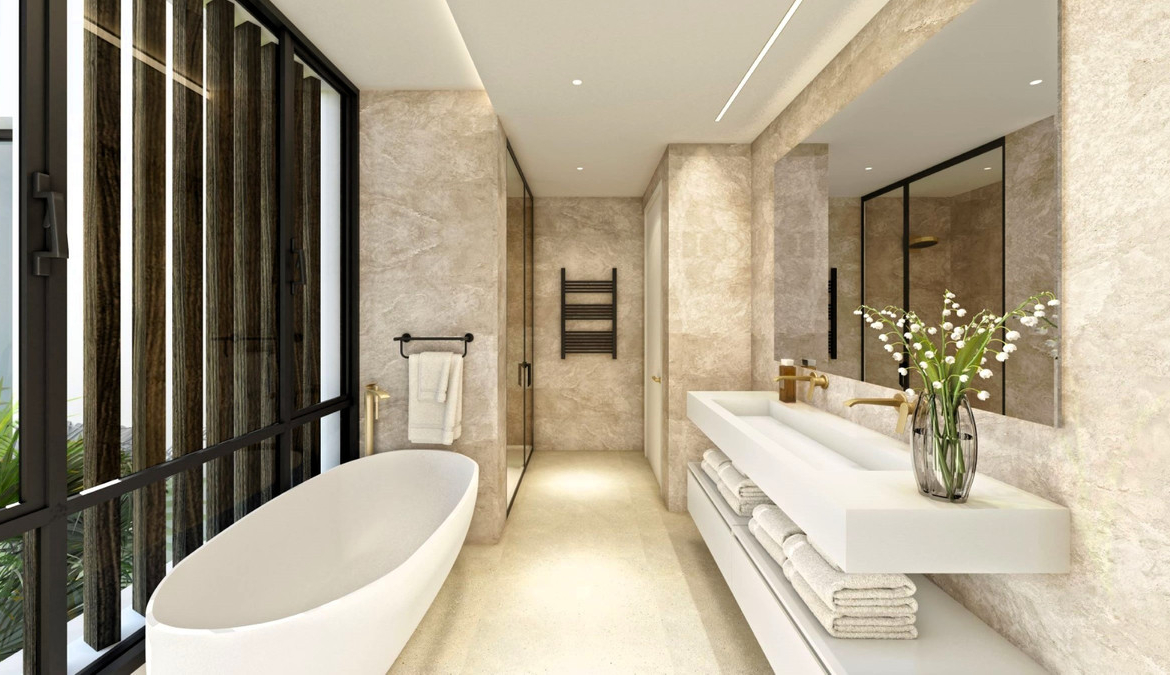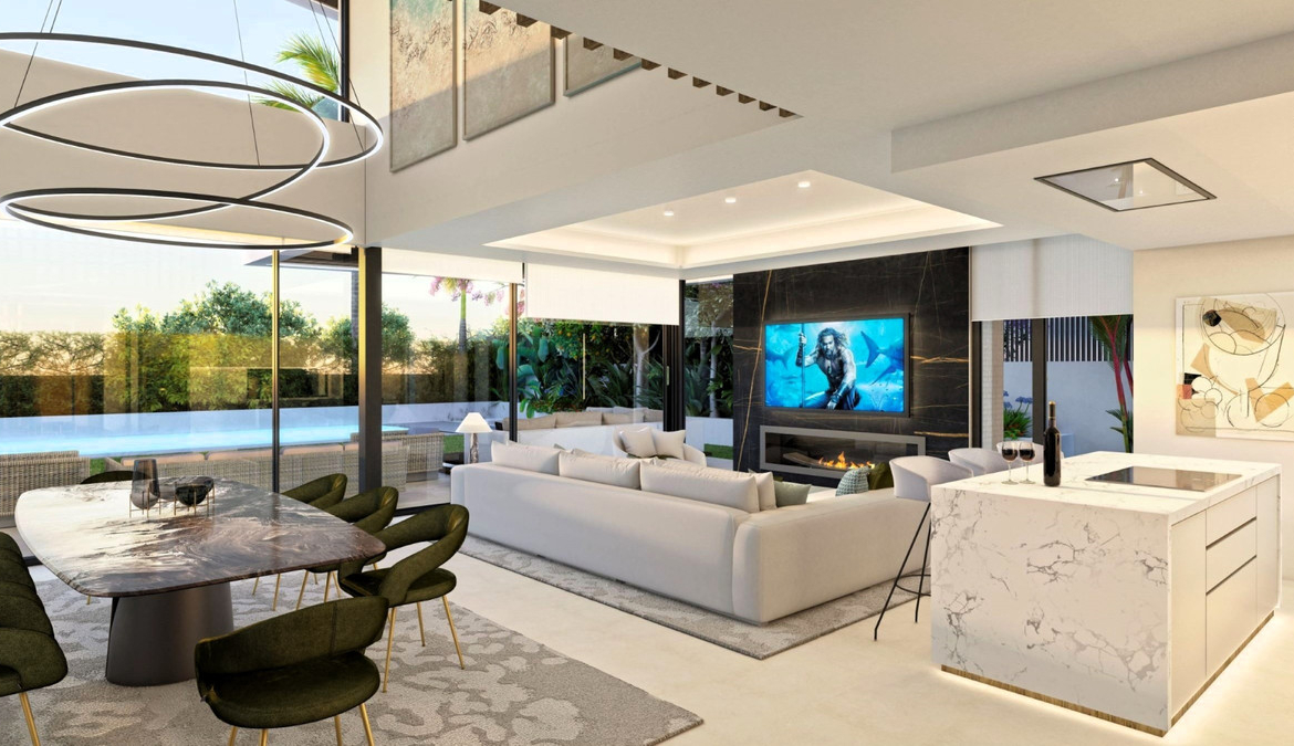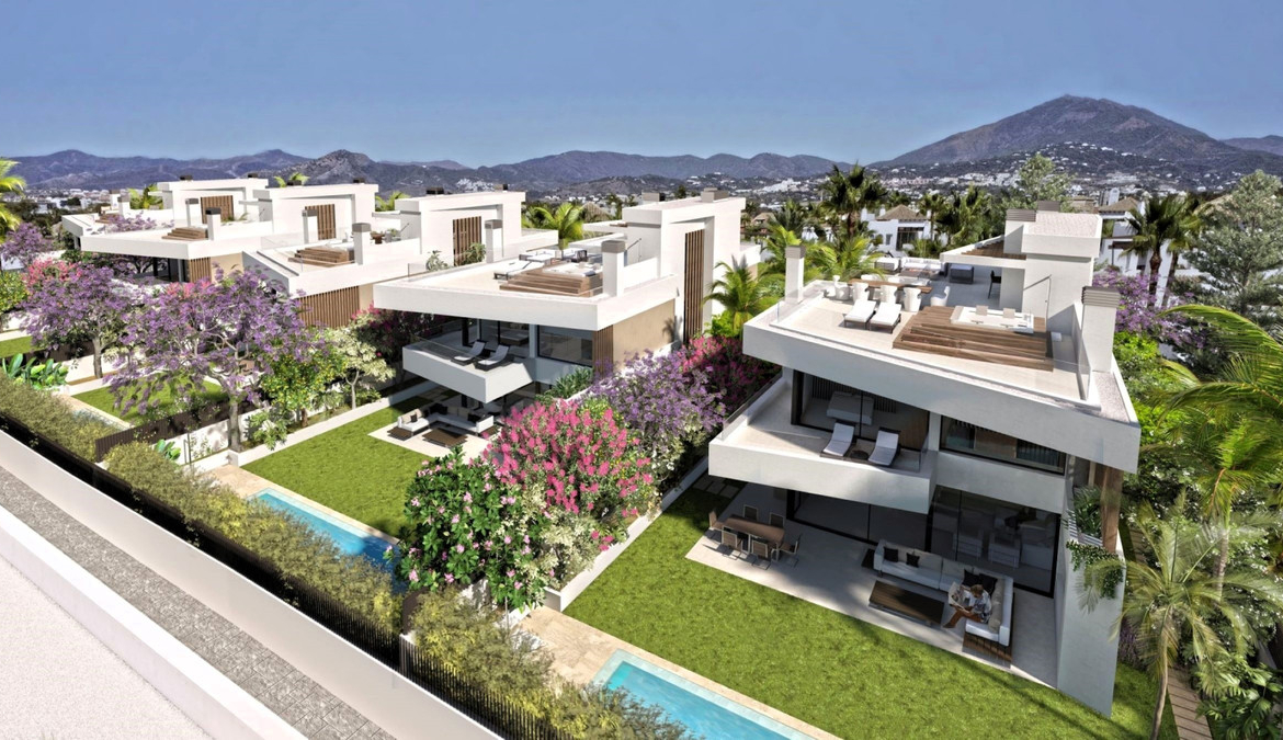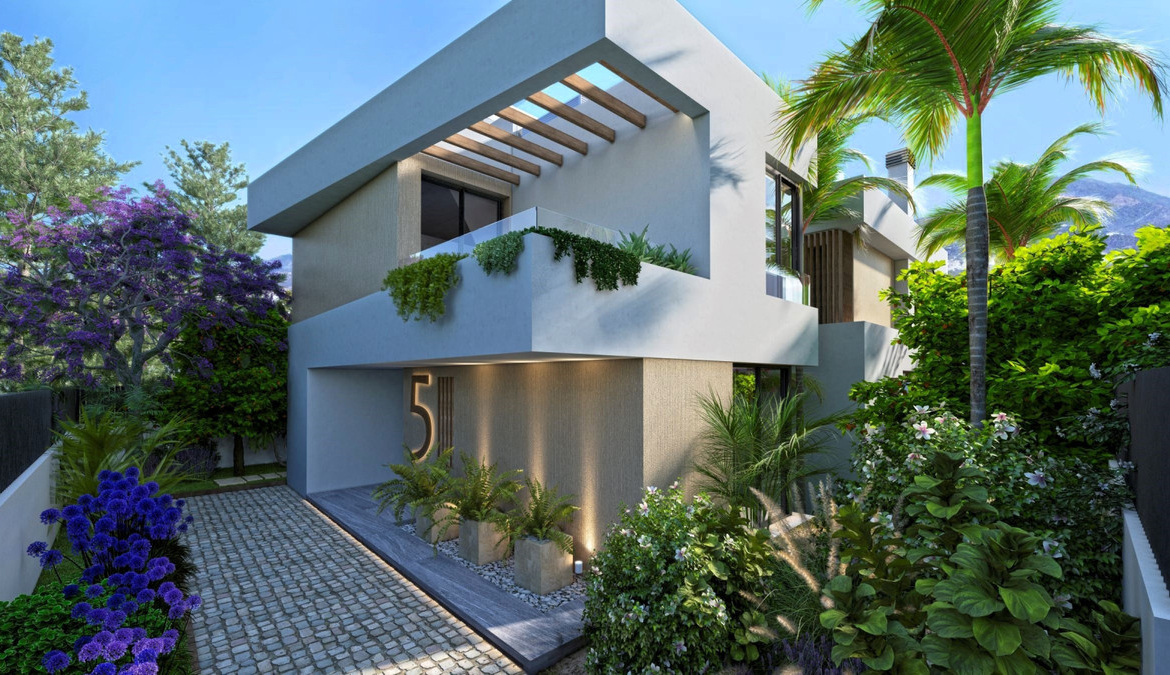 New development of 5 luxury south facing villas at Puerto Banús beach, within a short walk to the promenade, the port, and all San Pedro facilities, in a quiet and exclusive gated community.