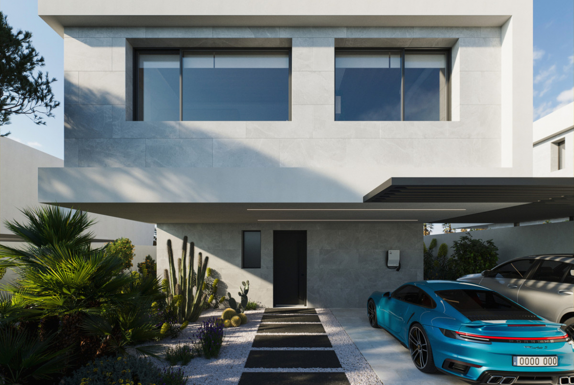 This villa further boasts advanced Zennio smart home technology, which encompasses automatic night lighting, high-quality Cortizo aluminium windows equipped with roller shutters/blackout shades in all bedrooms, a front door that includes a motorized lock and fingerprint reader and individually controlled air conditioning in each bedroom. The property comes with solar panels, along with battery support and a wall box as well as an energy-efficient heat pump for underfloor heating and water heating. All the bathroom fittings are from esteemed brands Villeroy & Boch and Sanycces.