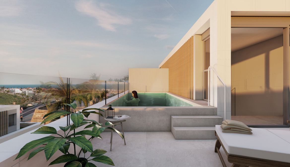 The new-build development is located in one of the most important towns on the Costa del Sol, Estepona, the so-called Jardín de Andalucia. Just 30 km from the city of Marbella is this municipality with more than 21 km of coastline, where you can discover its magical corners and its cosmopolitan spirit.