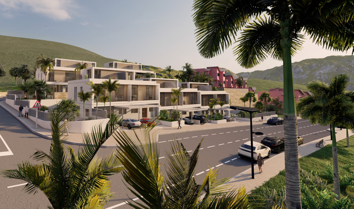 For the realisation of this exclusive new boutique development of 10 attached villas, a plot with wonderful views of the sea, the golf course and the mountains has been chosen.