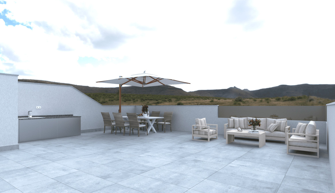 The development is a magnificent complex made up of 3 townhouses and 2 villas with 4 bedrooms and 3/2 bathrooms with a choice of 3 bigger bedrooms, private swimming pool and solarium with Summer kitchen to enjoy all hours of sunshine every day of the year.