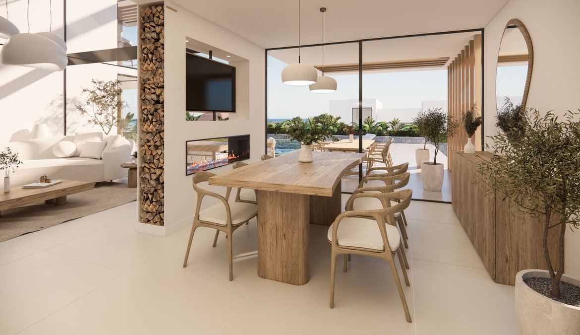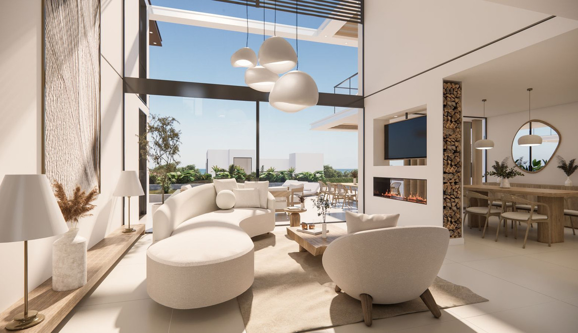 An open and bright architectural design blurs the boundaries between indoors and outdoors combining sophistication and luxury with the charm of the Mediterranean coastline.