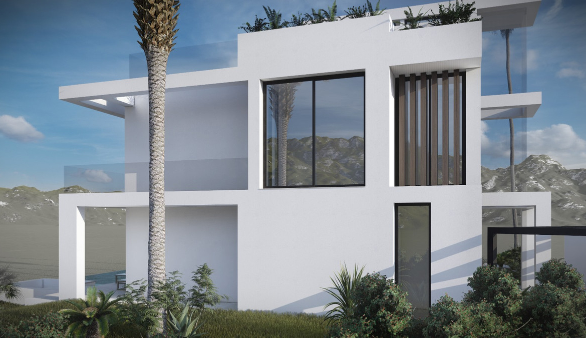 This villa is a new build turnkey villa project situated on a cul de sac in Urb. Buenas Noches (Upper zone) approx. 400 m2 to the beach, with access via a pedestrian bridge, about 15 min. walking distance. The plot size is 692 m2 and boasts panoramic views over the mediterranean sea, with views of the City of Estepona, The mountain of La Concha of Marbella and Sierra Bermeja Mountain of Estepona. You can see the waves crashing on the shore from the property. The property will be built on 3 floors plus the usable solarium.