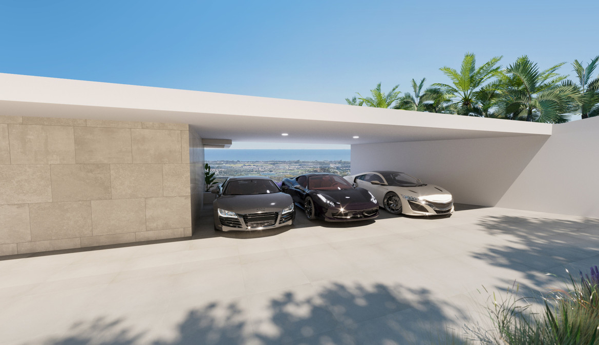 The villa offers a private garage for three cars with a glass wall providing spectacular views. Additional parking space for three cars is available outside. The latest technologies, such as Home Automation, will be integrated, allowing control of various features from your phone. Also, in just two years, a new road will connect El Madroñal directly with Real de la Quinta and Nueva Andalucia.
